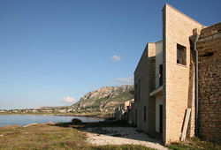 All'interno di un'area artigianale dismessa, dentro al perimetro di un ex stabilimento di lavorazione dei marmi provenienti dal vicino bacino marmifero di Custonaci, nasce una casa ad appena 20 metri dalla linea della battigia. Questa si sviluppa attorno ad una vecchia cisterna ormai in disuso, dentro la quale venivano lavati gli scarti di lavorazione del marmo. Il fabbricato si sviluppa su due livelli, dei quali uno semiipogeo.