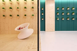 Pochi sono stati i colori e i materiali a contrasto, come il legno di abete ed il colore verde.